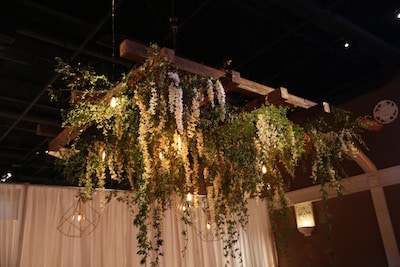 This may have been one of the smallest vignettes…but it was certainly one of our favorites! Our Black Velour Drapery and Edison Bulbs add to the autumnal dream Nicole Ha created!