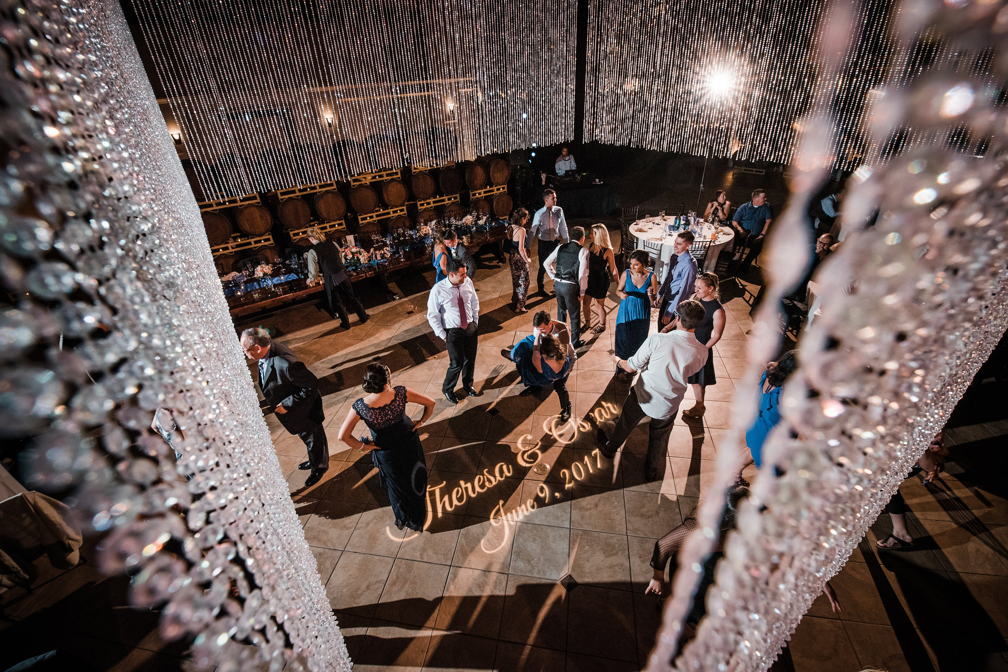 This week’s photo comes from Maurice Ramirez Photography! We love how he captured our 12’x12′ Crystal Beaded Chandelier from a different vantage point- isn’t it incredible? We love the bird’s eye view of Theresa and Oscar’s dance floor!